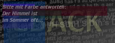 Die Visuelle Bestätigung hilft dabei automatische Spambots und Scripte von den Diensten dieses Forums abzuhalten. Derartige Scripte sind normalerweise nicht in der Lage den untenstehenden Code zu erkennen. Bitte geben Sie also in das untenstehende Feld die Buchstaben und Zahlen ein, die Sie in dem Bild erkennen können oder beantworten Sie die angezeigte Frage.